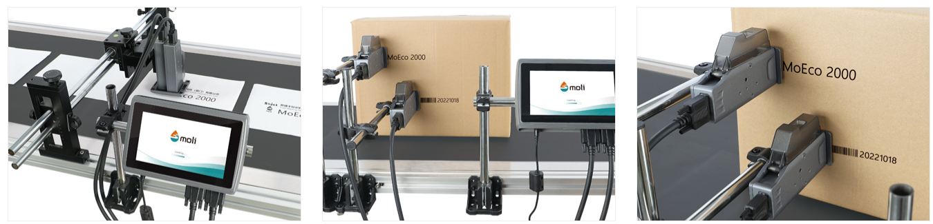 MoEco 2000 is a high-resolution inkjet printer (High-Resolution Inkjet Printer) using Thermal Inkjet (TIJ) technology from Sojet that uses HP ink cartridges. It is designed for printing codes, barcodes, QR codes, and logos on a wide variety of surfaces such as food, beverages, pharmaceuticals, and electronics. It features a 7-inch touchscreen for easy operation, with the printhead separated from the controller. It supports print heights of 1–25.4 mm (2 printheads), offers a maximum resolution of 1200 DPI, and delivers excellent value for use.